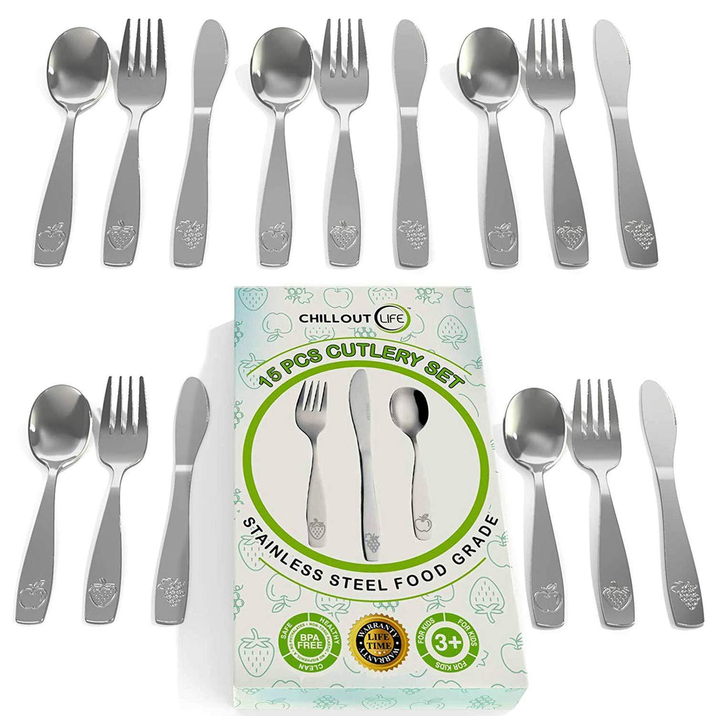 15 Piece Stainless Steel Kids Silverware Set | Child and Toddler Safe Flatware | Kids Utensil Set |